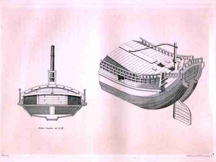 Two views in line drawings, the left one captioned "Cross Section at A.B."